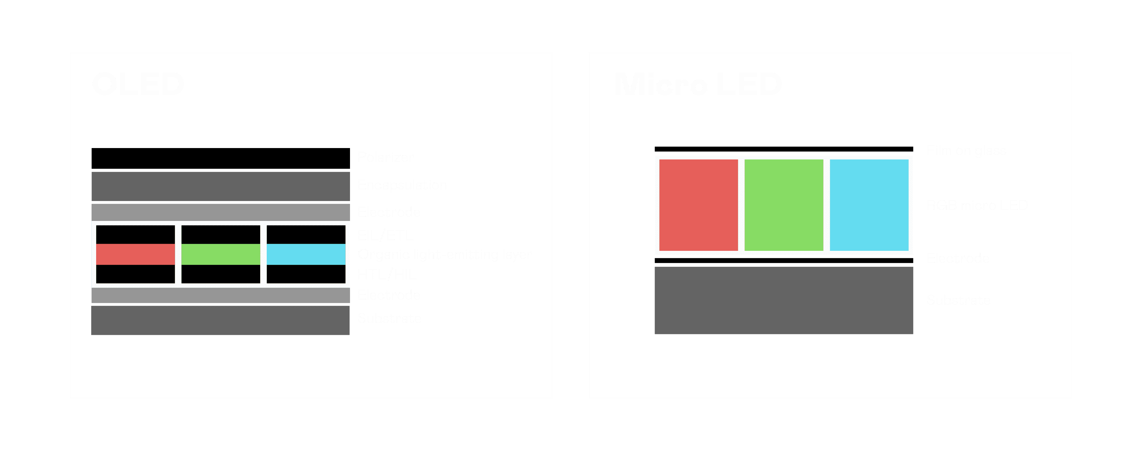 以 LED 做为显示画素,,,,可让 LED 的发光效率发挥到极致,,,,从而让显示器具备优异的亮度表现,,,不论是在户外或室内,,均具备出众的显示效果。。同时,,,,与使用有机材料的 OLED 相比,,,LED 具备更稳定、、寿命更长的特性,,,,不仅不会有画面烙印问题,,,而且更不容易出现故障、、、坏点。。